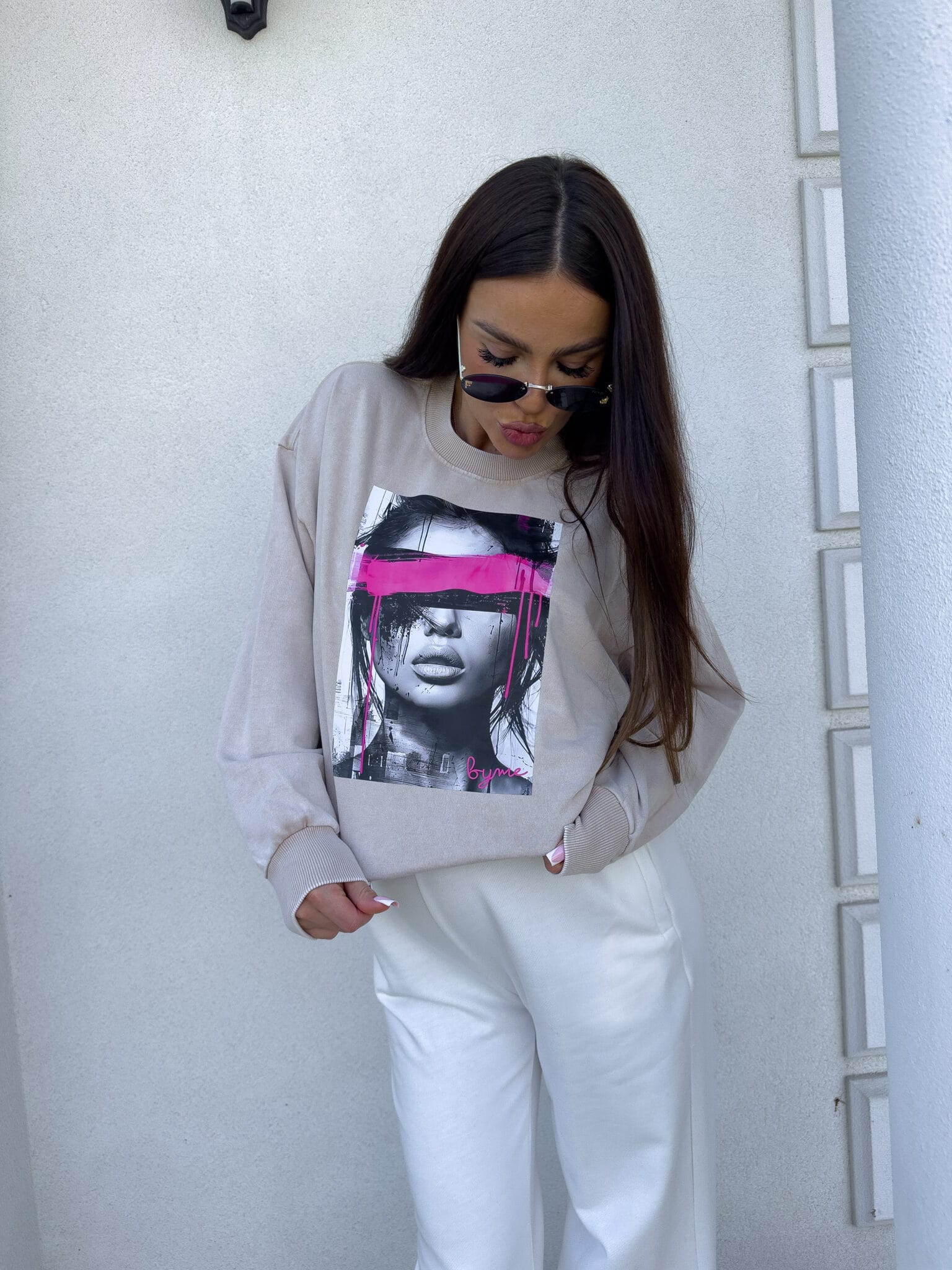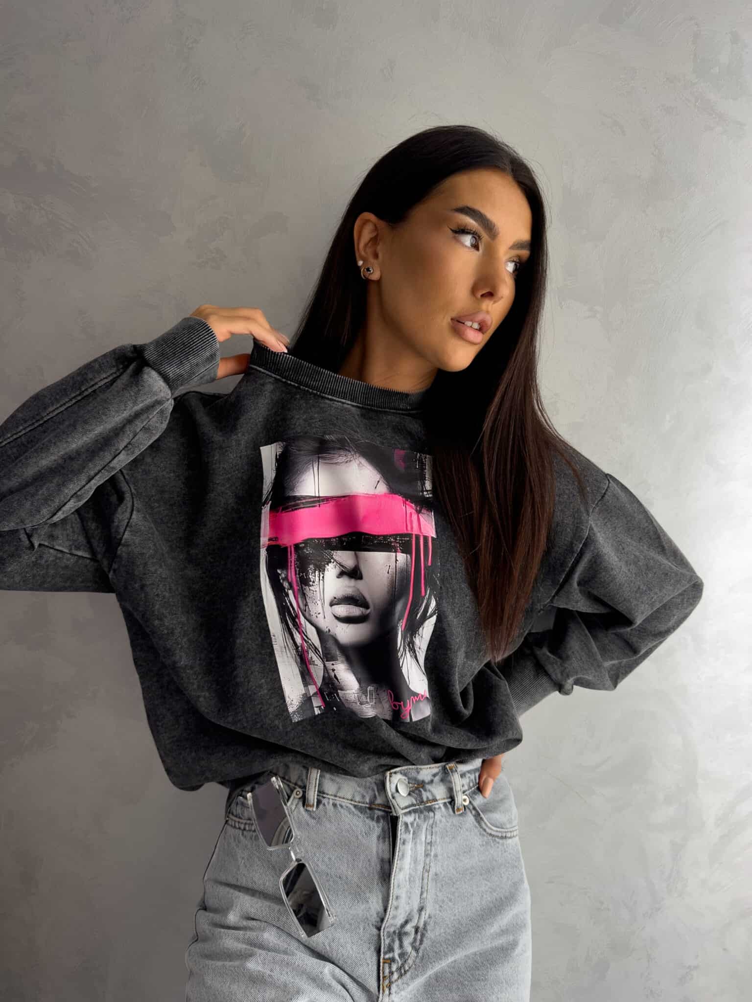 Stylowa bluza o swobodnym kroju, wykonana z miękkiej, dekatyzowanej bawełny, która nadaje jej unikalny, lekko sprany wygląd. Zakładana przez głowę, długie rękawy zapewniają komfort noszenia, a nadruk z przodu dodaje charakterystycznego akcentu. Idealna na co dzień – do jeansów, dresów czy szortów.