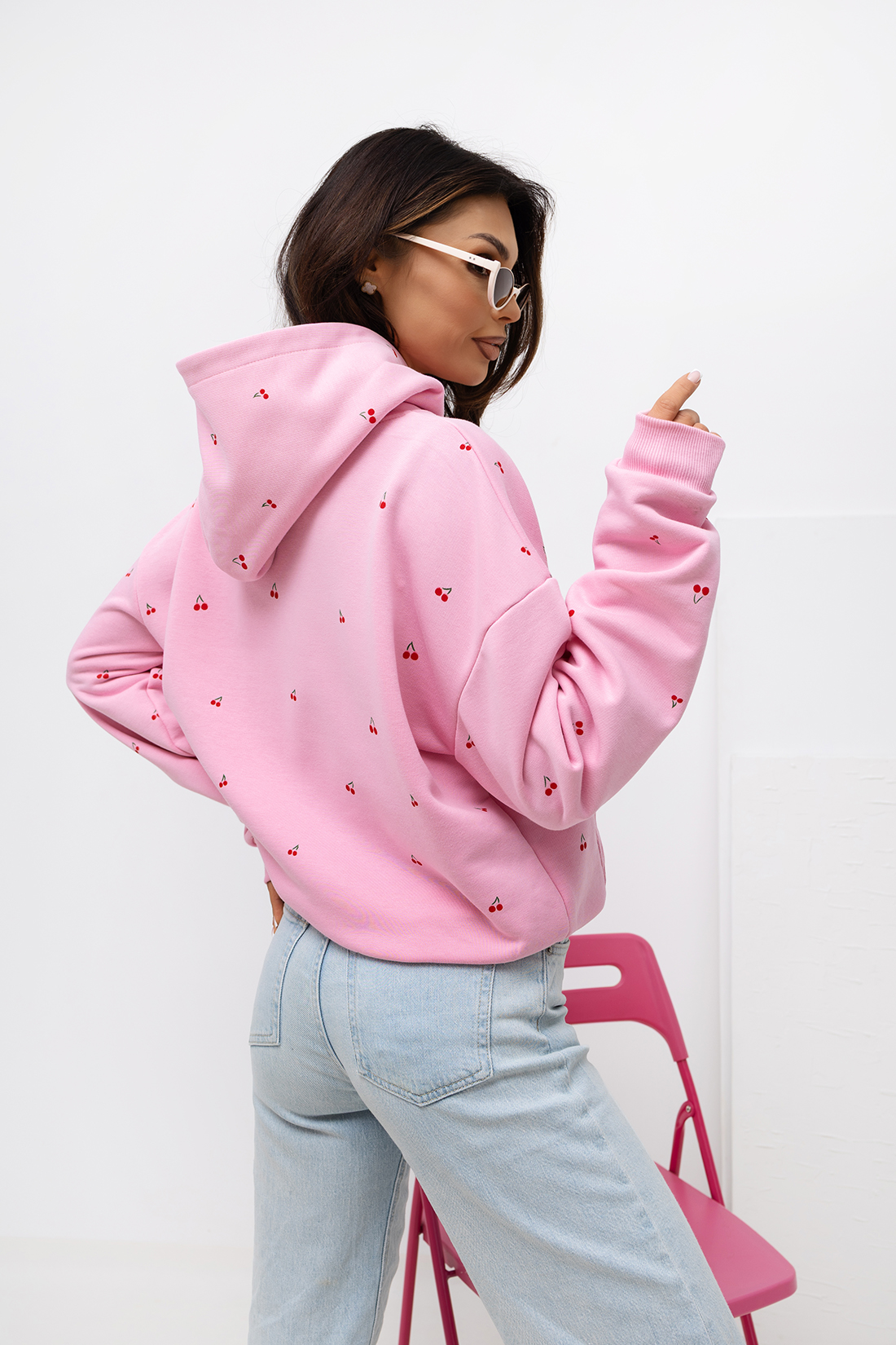Napisz pierwszą opinię o „Bluza damska z kapturem Wisienki Lara Fashion róż”