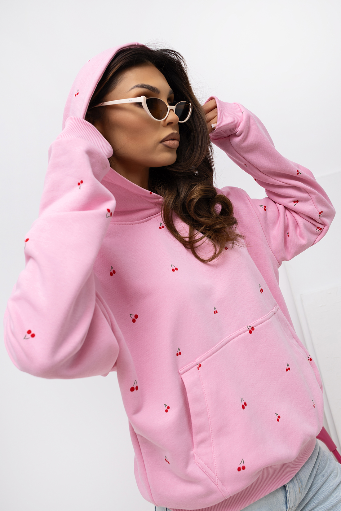 Bluza damska z kapturem Wisienki Lara Fashion róż