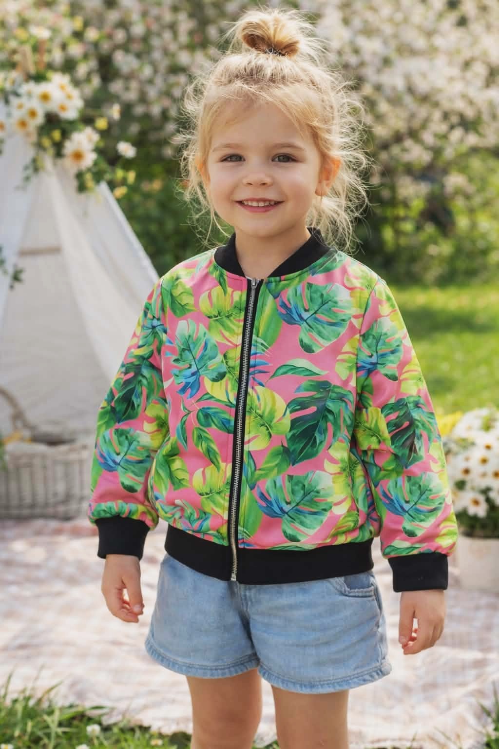 Bluza dziecięca bomberka różowo-zielona