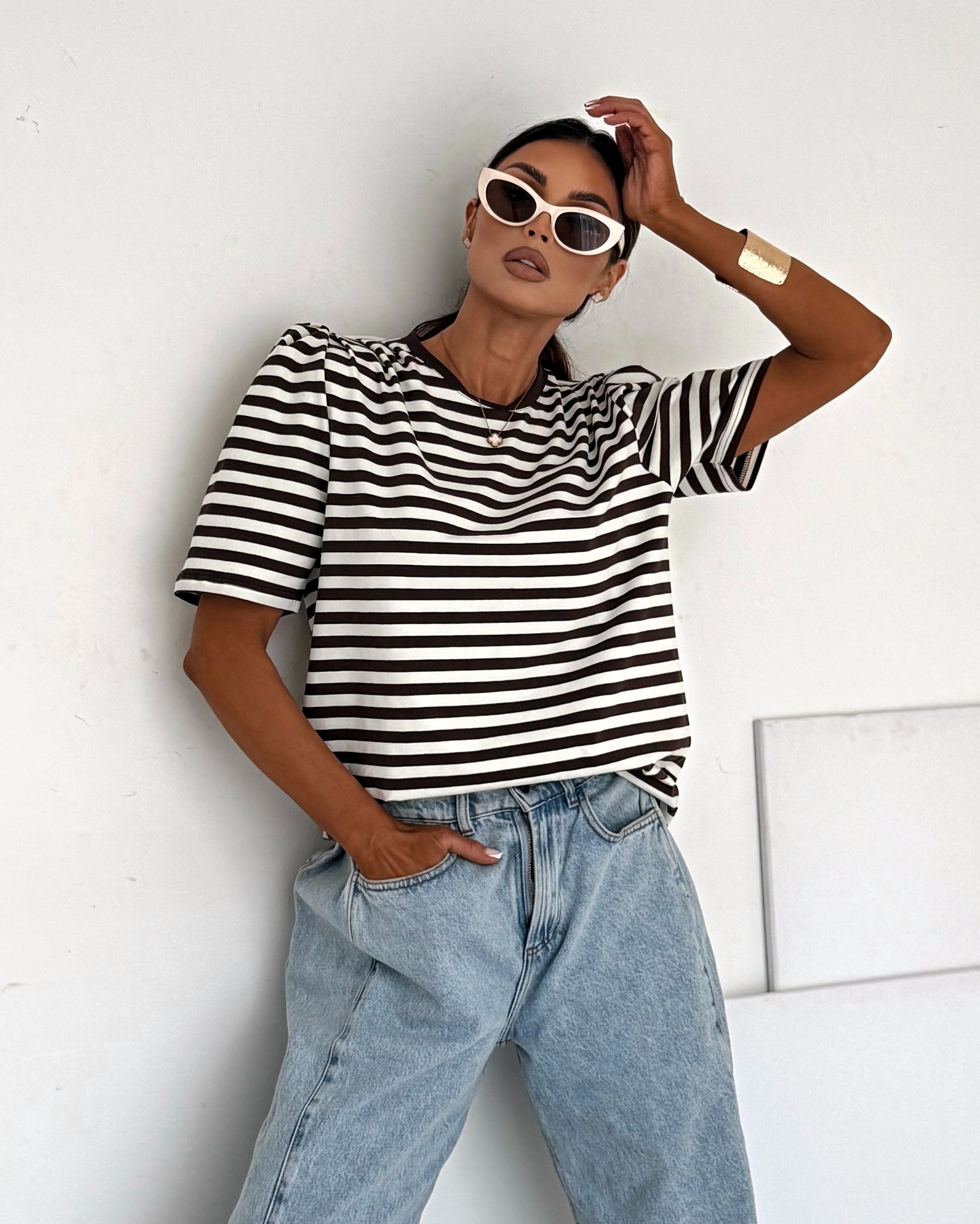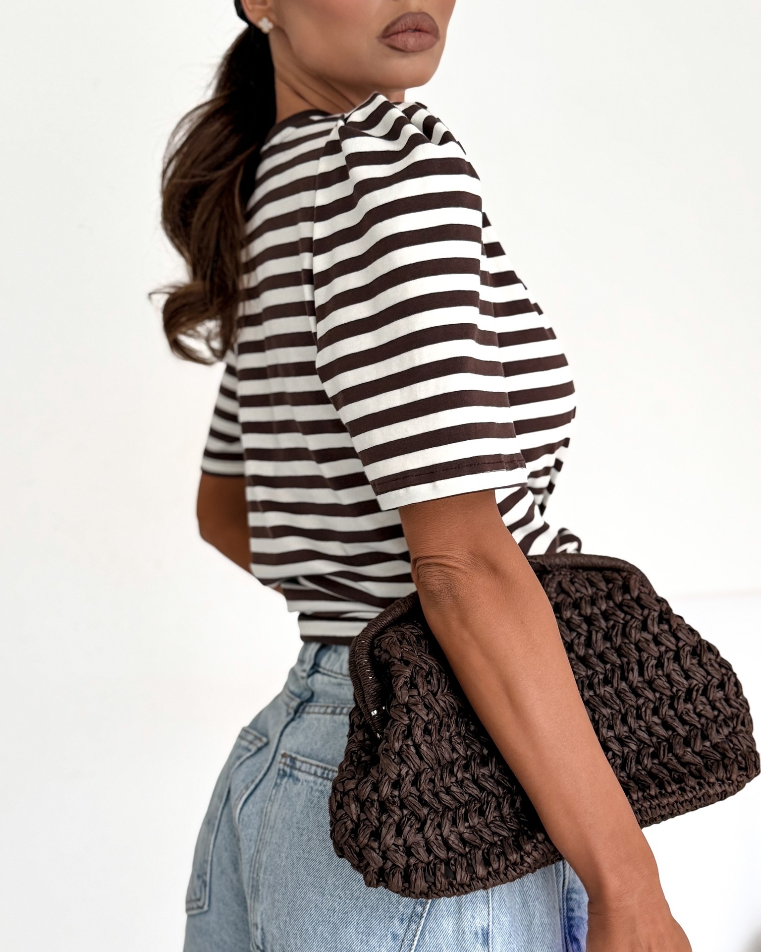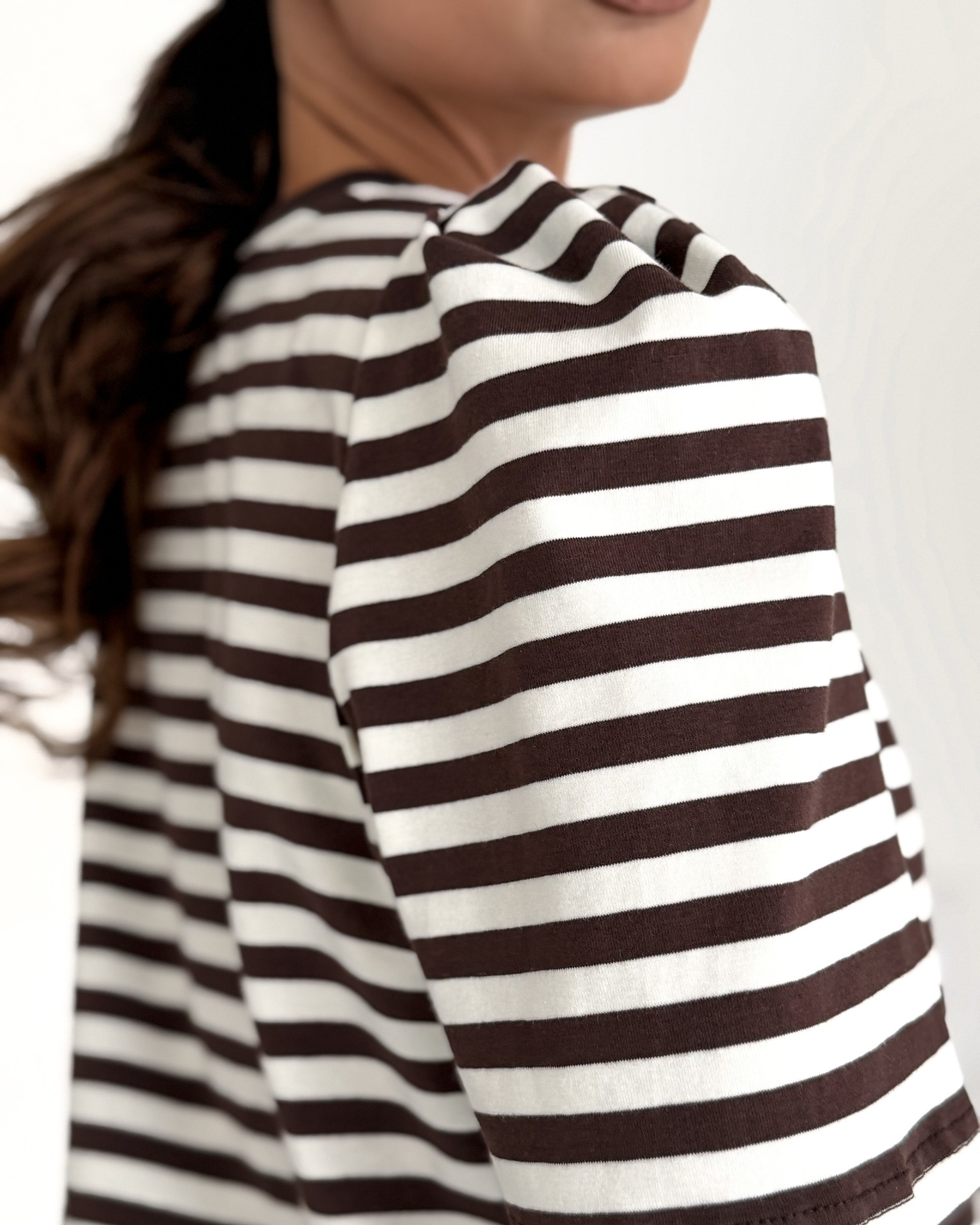 Bluzka damska Bufka Selfie ecru chocolate paski