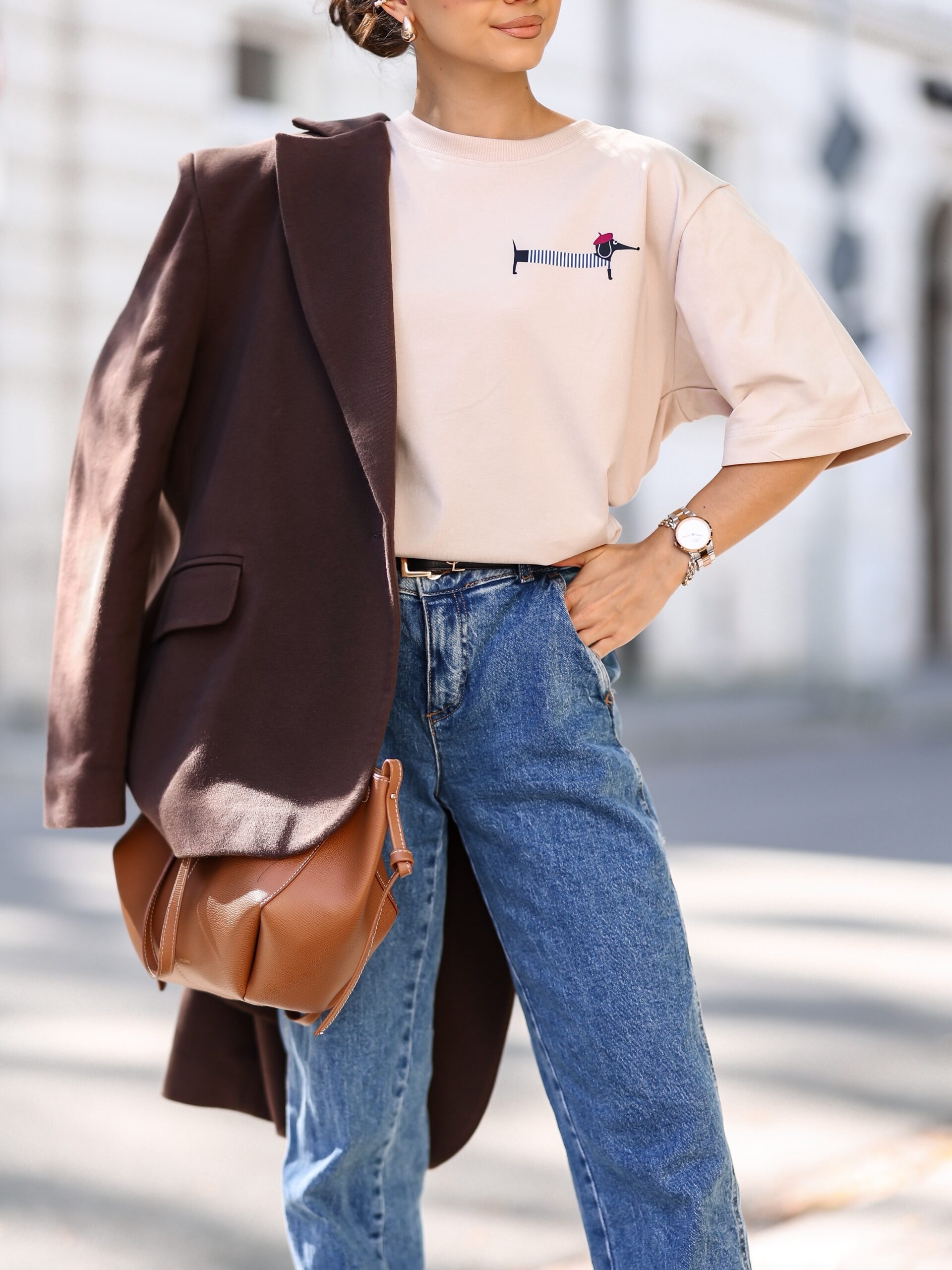 T-shirt damski oversize  z nadrukiem Jamnika Paris – premium, polska produkcja.