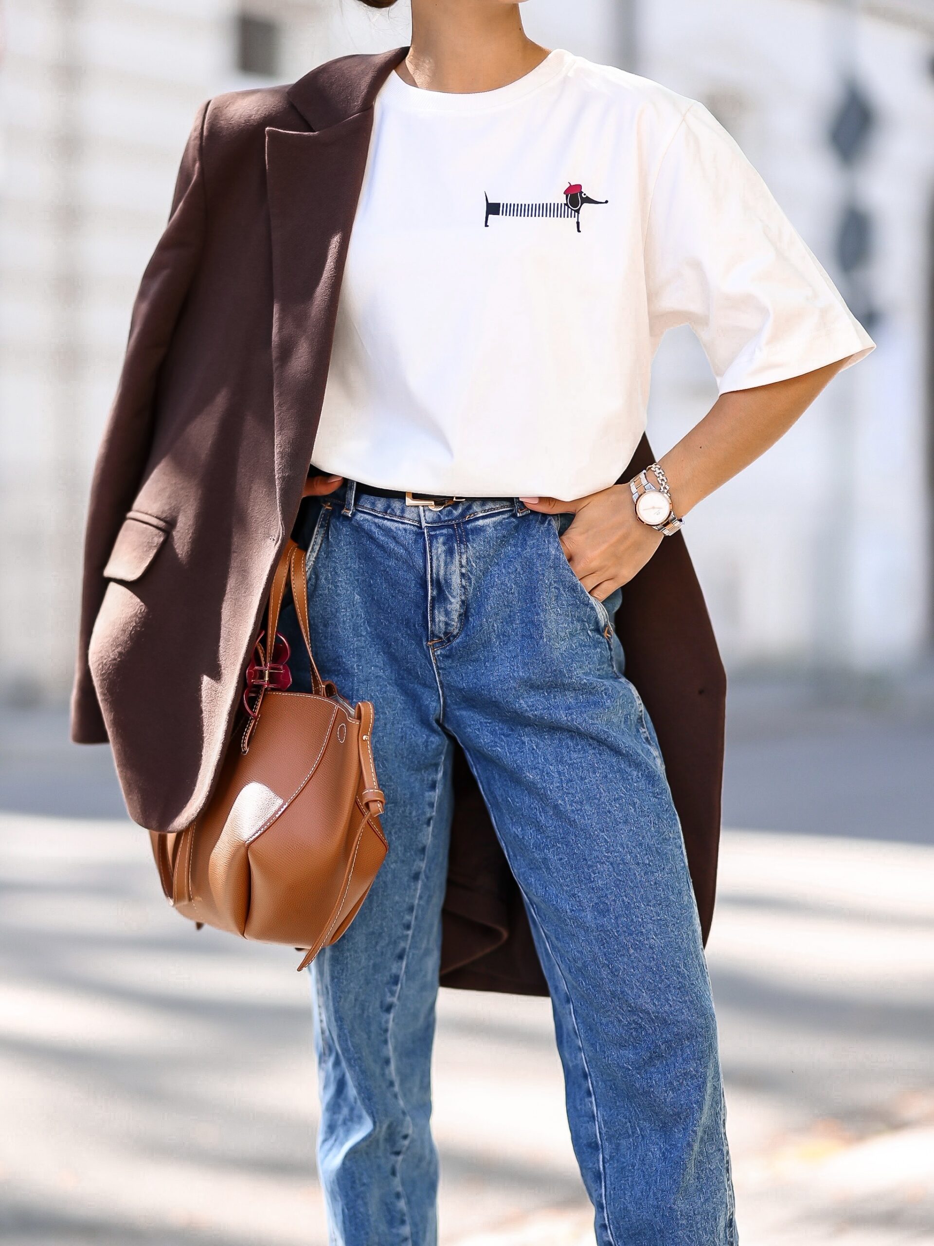 T-shirt damski oversize śmietankowy z nadrukiem Jamnika Paris – premium, polska produkcja.