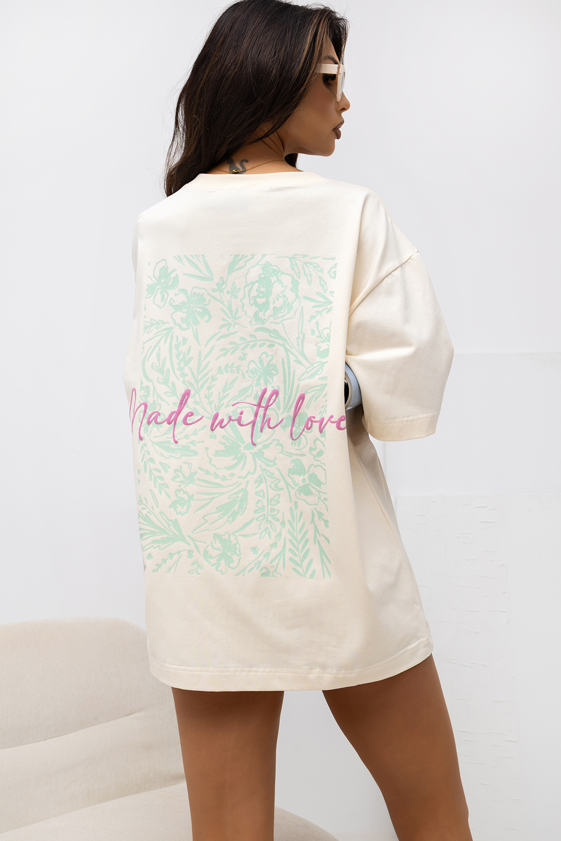 Oversize’owy T-shirt, który łączy wygodę, styl i jakość PREMIUM. Minimalistyczny przód i efektowna grafika na plecach – model, który robi całą stylizację.
