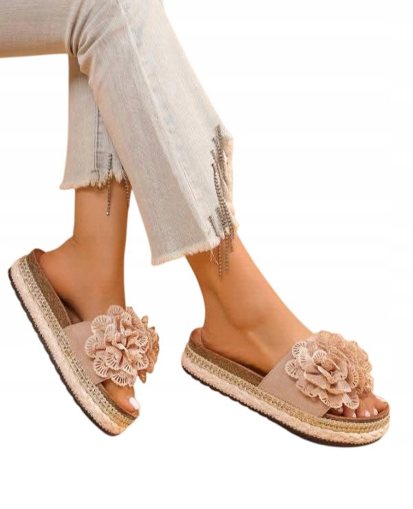 Stylowe damskie klapki na platformie z efektowną kwiatową aplikacją to absolutny hit tego sezonu!