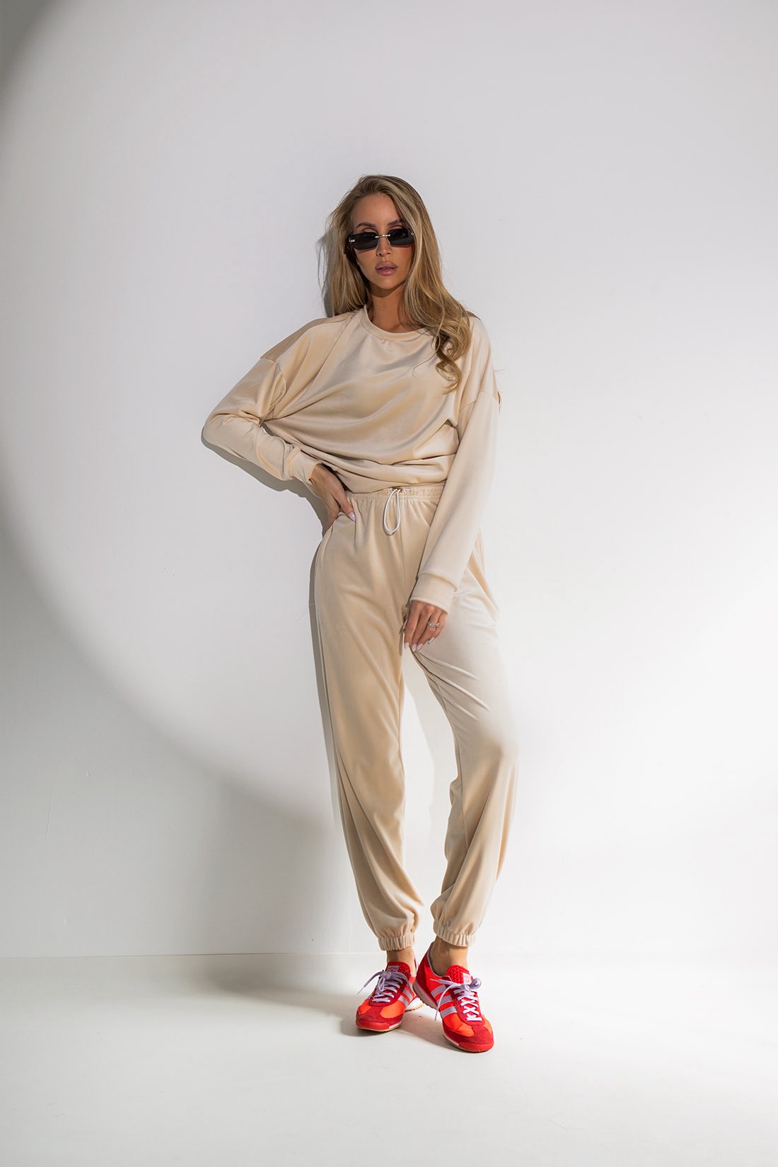 Komplet damski welurowy Stayhere bluza spodnie beż