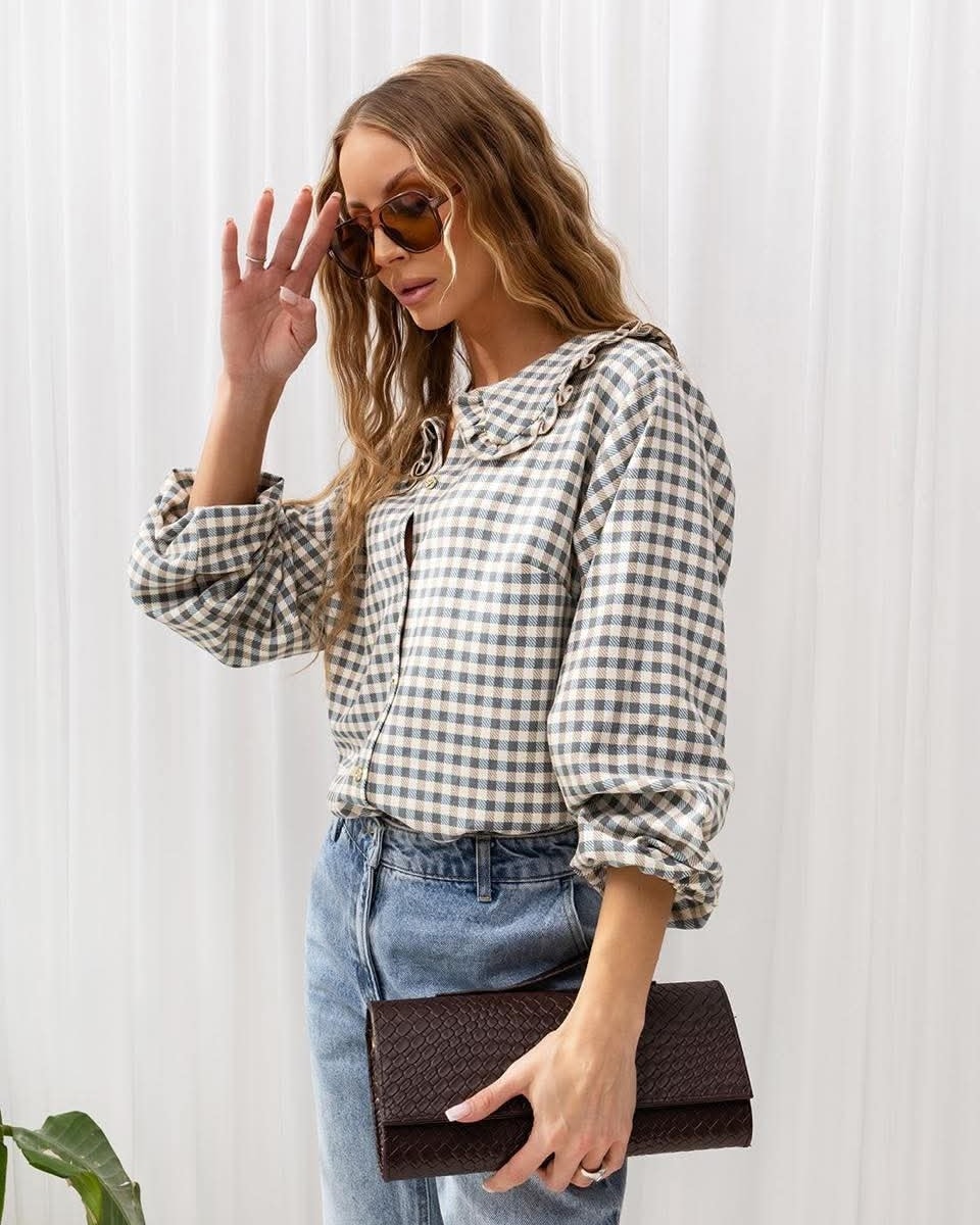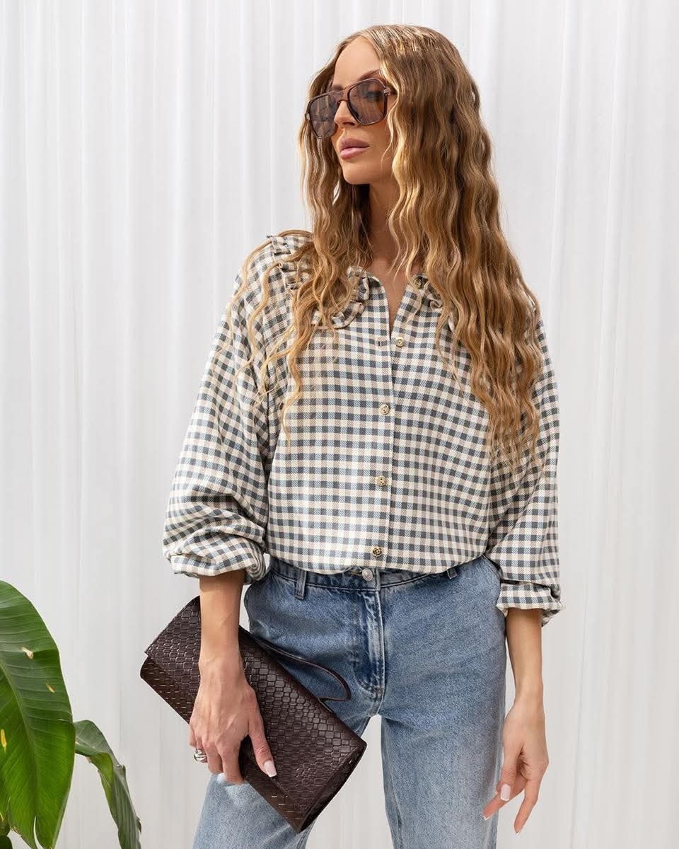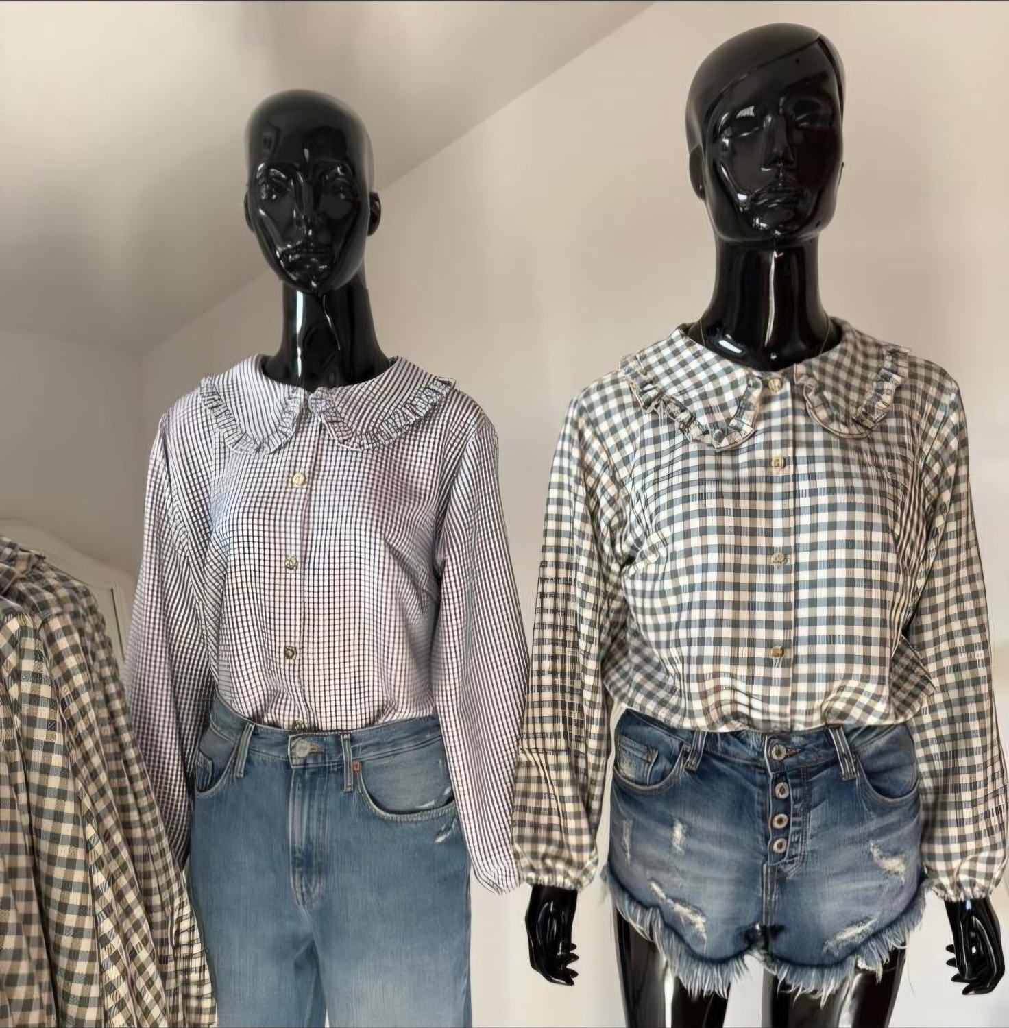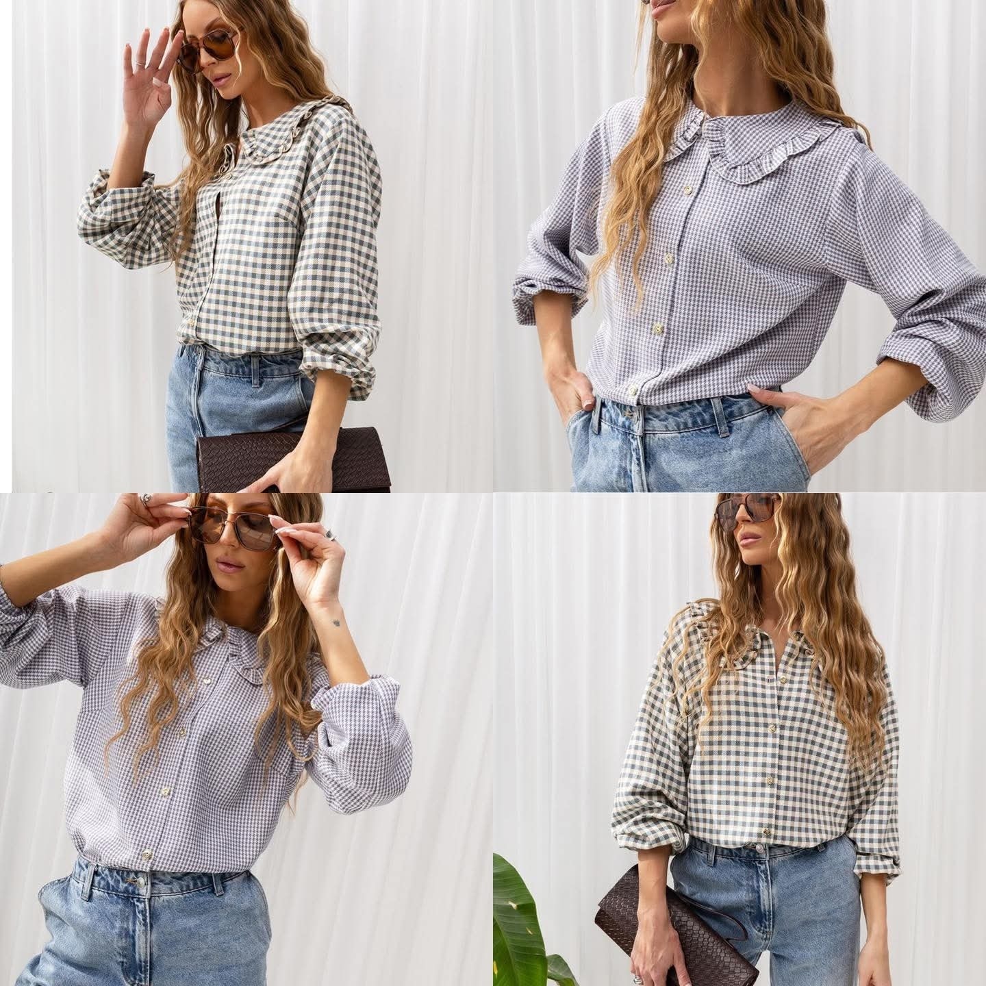 Klasyka w najpiękniejszym wydaniu ✨ Kobiece koszule w delikatną kratkę lub gładkie z uroczym, ozdobnym kołnierzykiem wykończonym falbanką.
