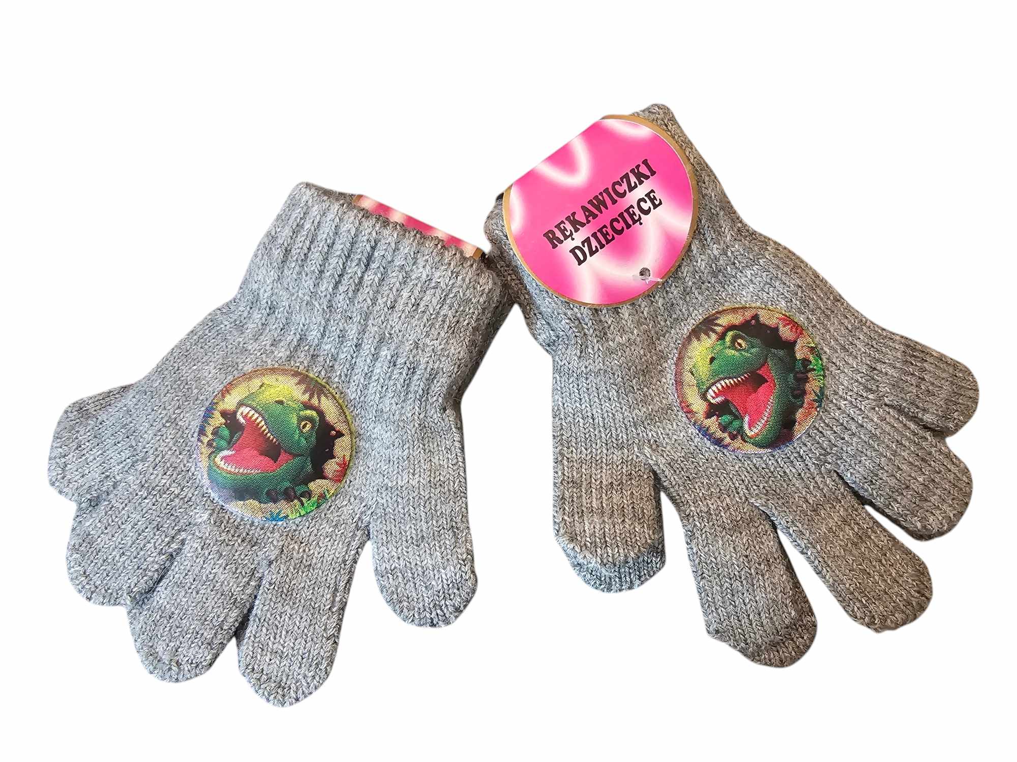rękawiczki dziecięce Dinozaur szare rozmiar 12