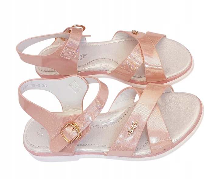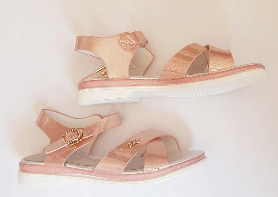 Sandałki z najnowszej kolekcji z ozdobnymi, złotymi detalami.