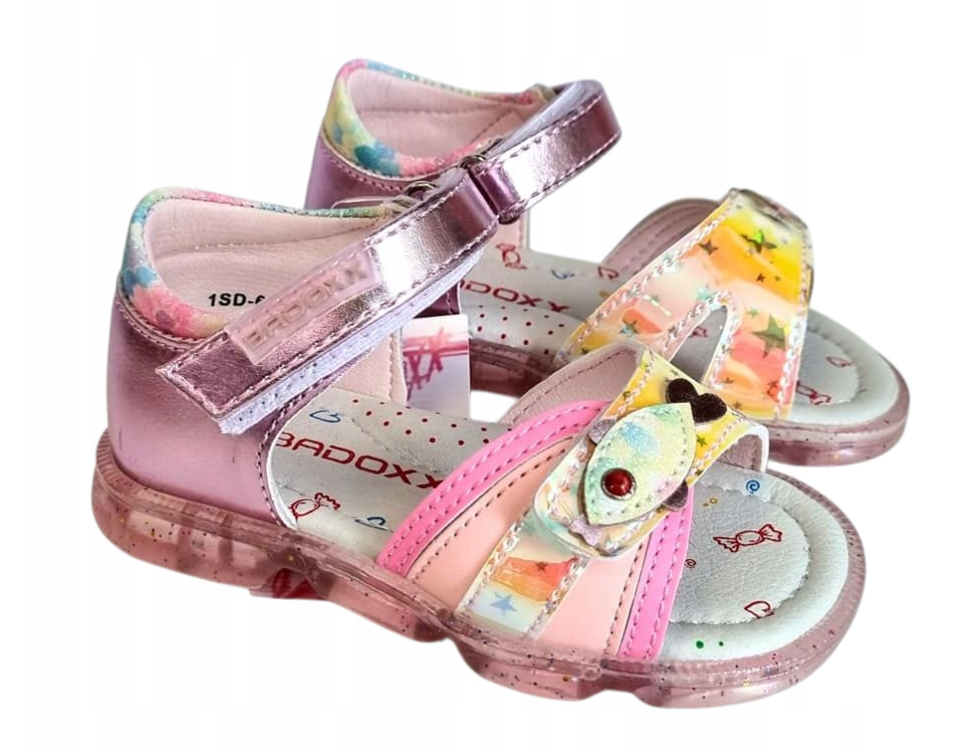 Buty sandały dziecięce marki BADOXX. Długości wkładek podane przy rozmiarach są mierzone przez nas osobiście. W środku wysokojakościowa wkładka która zapewnia komfort i zdrowie dla stópki Twojego dziecka. Dwa zapięcia na rzep dbają natomiast o idealne dopasowanie i ułatwiają zakładanie i ściąganie butów. Świeże połączenie kolorów sprawia, że sandały nabierają uniwersalnego, sportowego charakteru.