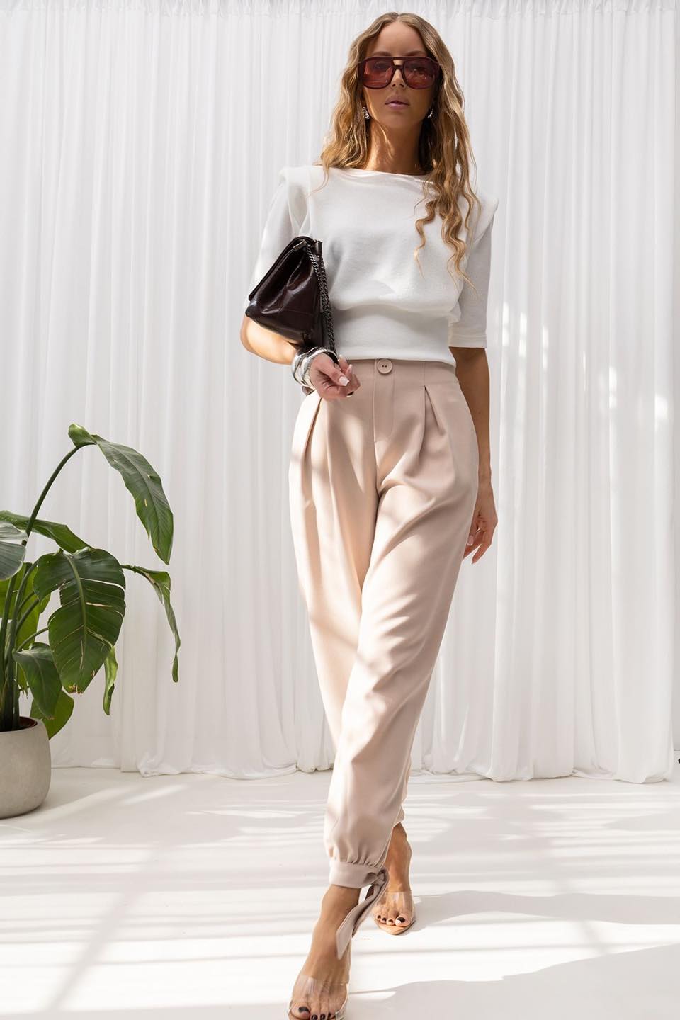 Spodnie Gaya w klasycznym beżowym odcieniu to ponadczasowa baza, która łączy elegancję z codziennym komfortem. Wykonane z gładkiej, lejącej się wiskozy pięknie układają się na sylwetce, nadając stylizacji lekkości i subtelnego, kobiecego charakteru.