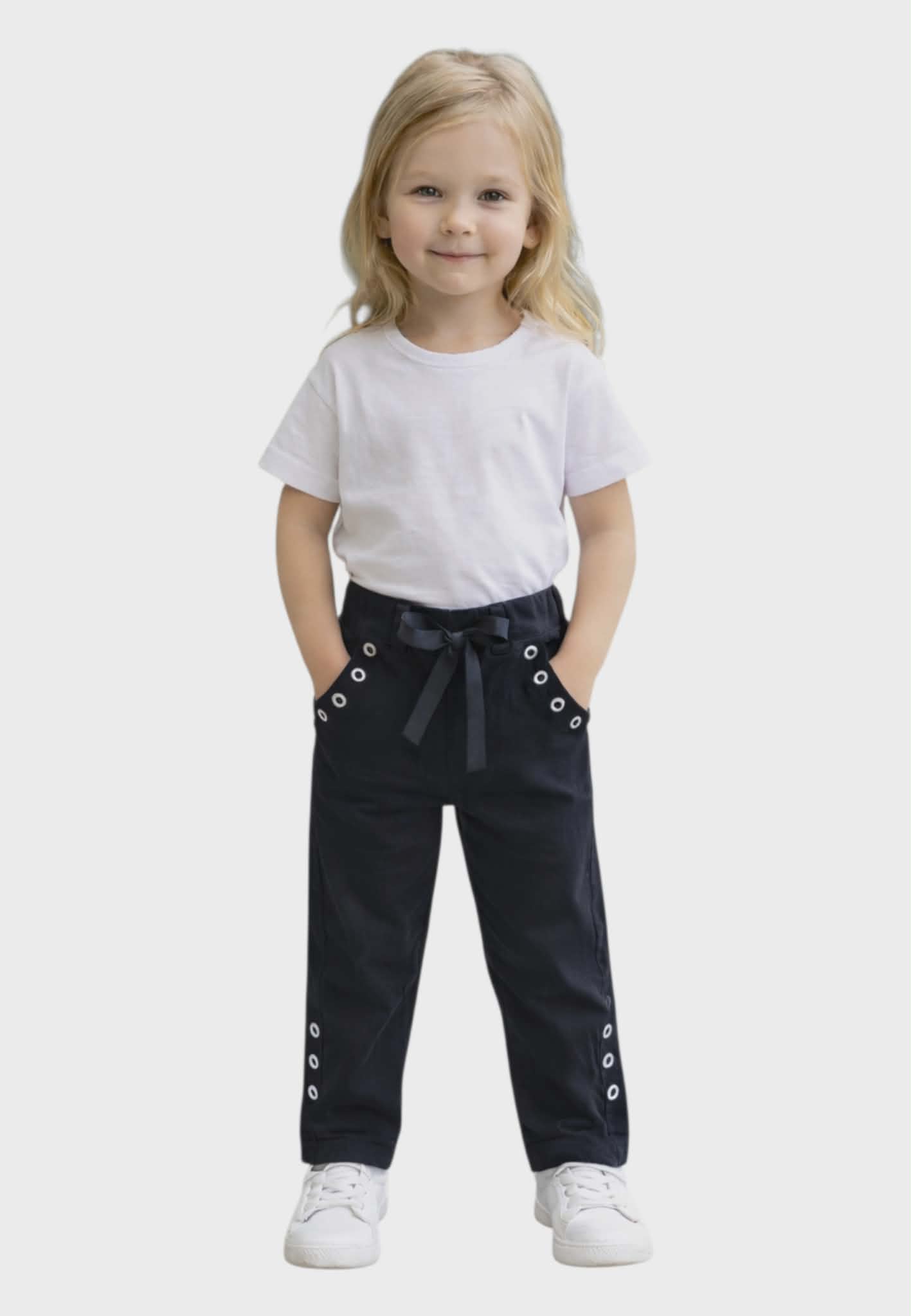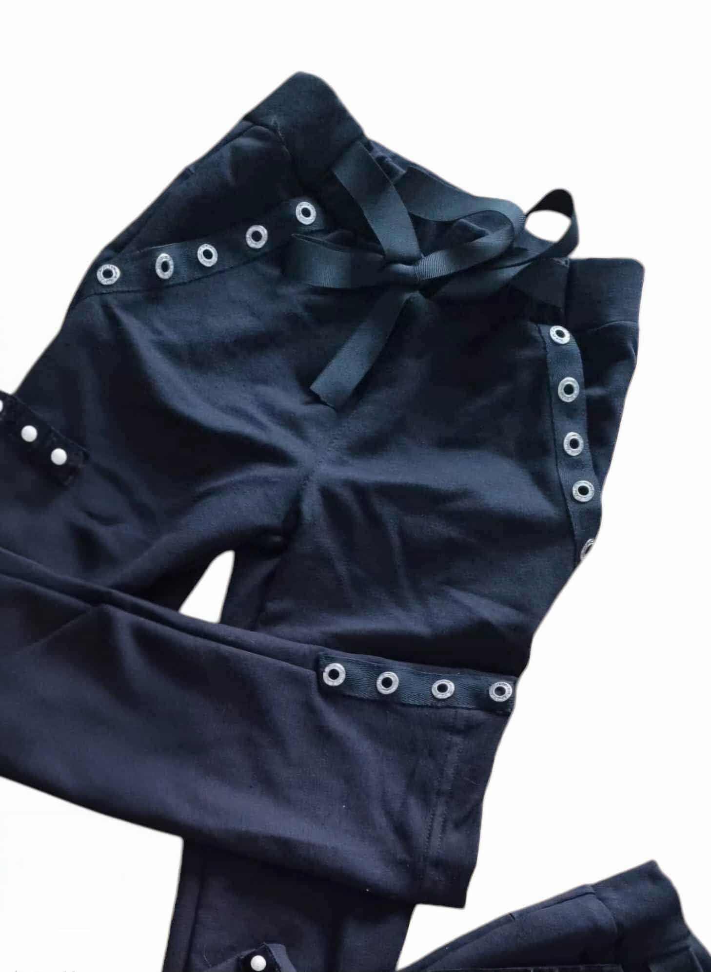 Bawełniane spodnie w kolorze czarnym z ozdobnymi oczkami od świetnego polskiego producenta IGOMIL.