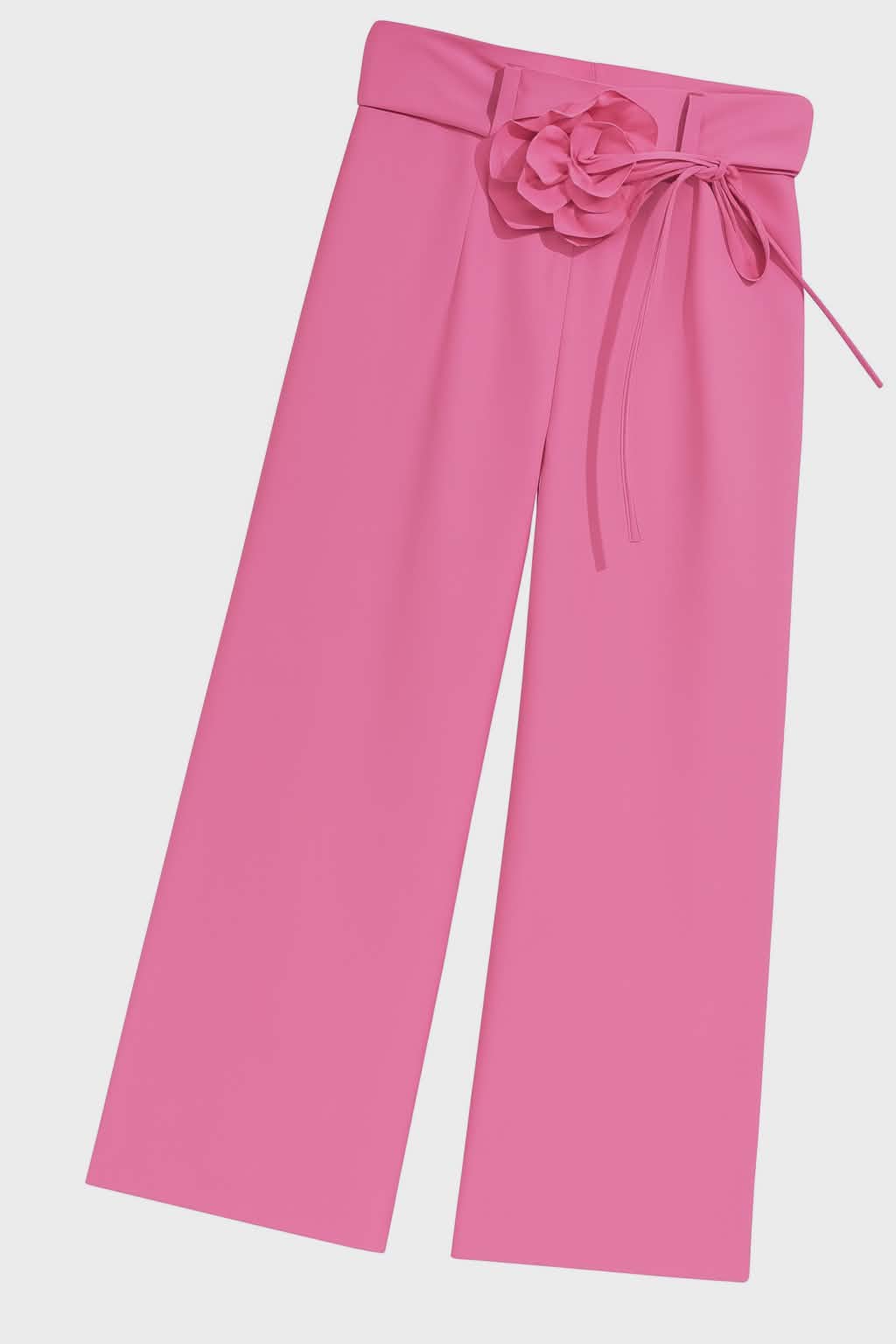 🔸 Różowe spodnie z kokardą z kwiatem🎀 – szerokie, wygodne, elastyczne w pasie, zapewniają pełną swobodę ruchu.