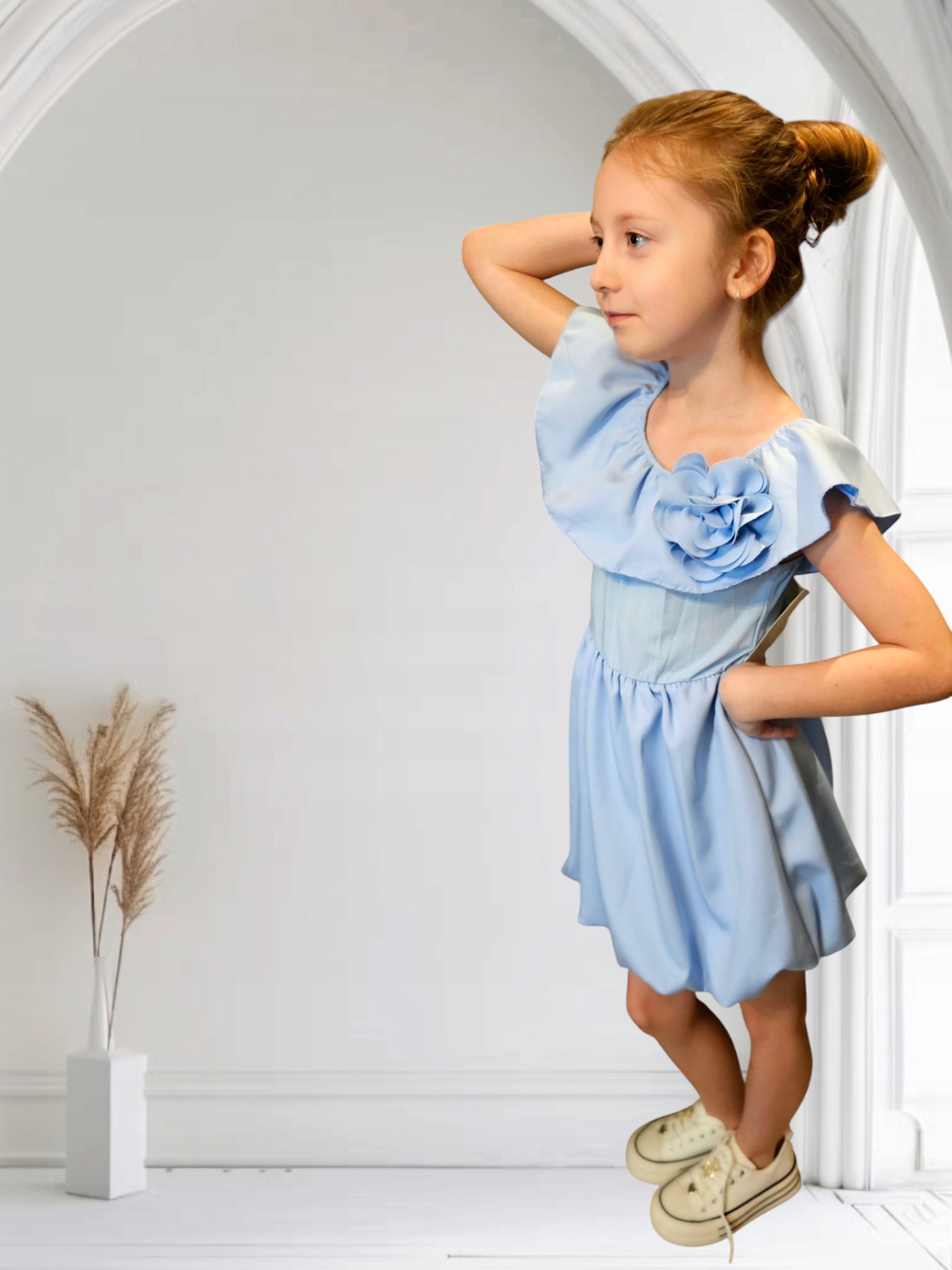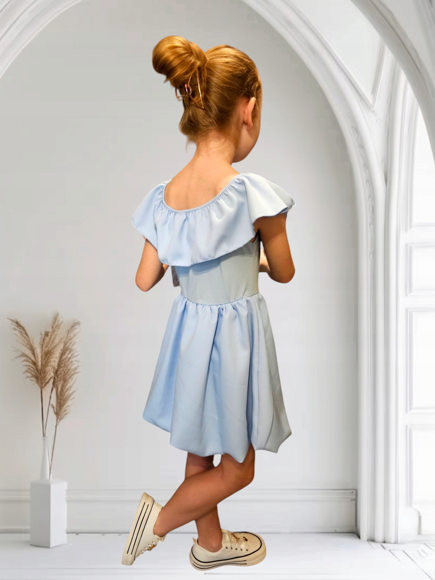 Elegancka Błękitna Sukienka dla Dziewczynki – Idealna na Wesela i Komunię! 🌸