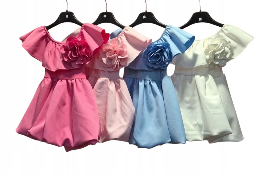🔹 Piękna, zwiewna sukienka z efektowną falbaną i dużym, stylowym kwiatem.