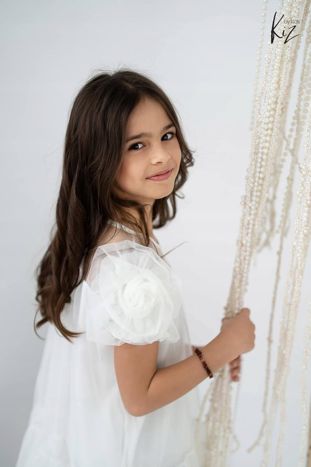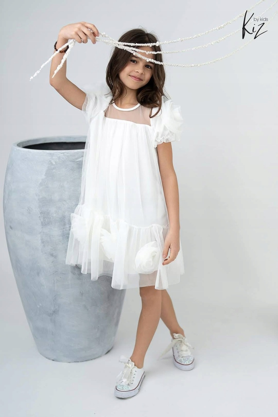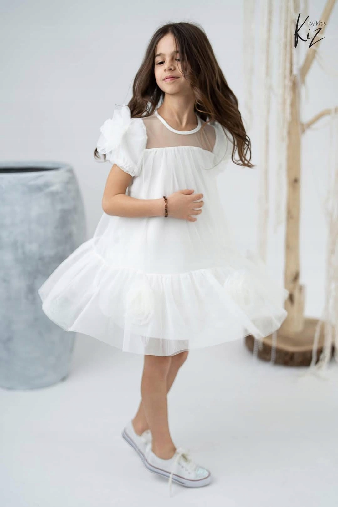 Sukienka dziecięca wizytowa Róże biała