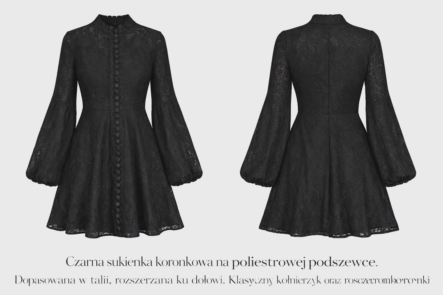 - kolor: klasyczna czerń materiał: koronka gipiura