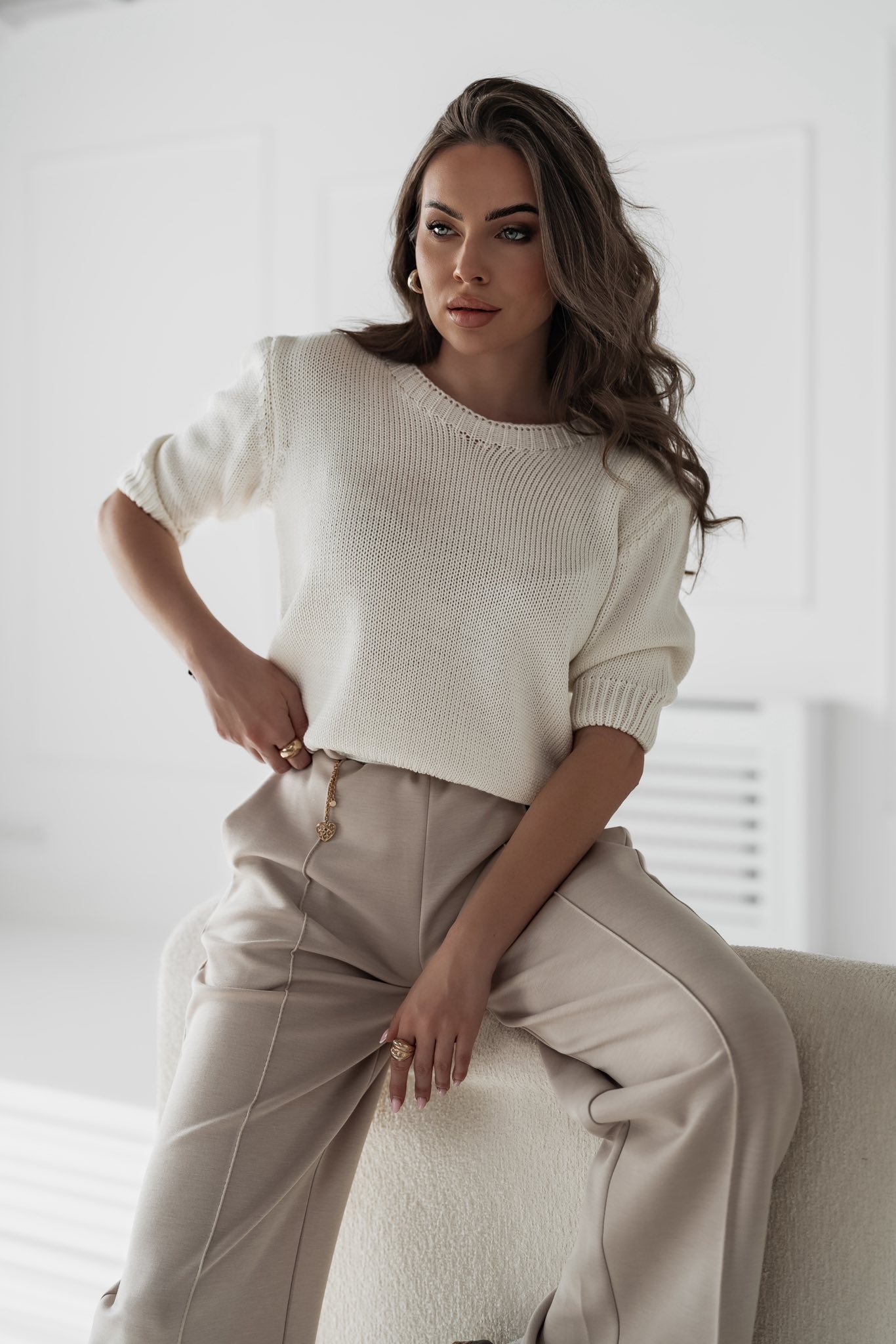 Ten uroczy sweterek w pięknej bieli to idealna propozycja na każdą okazję